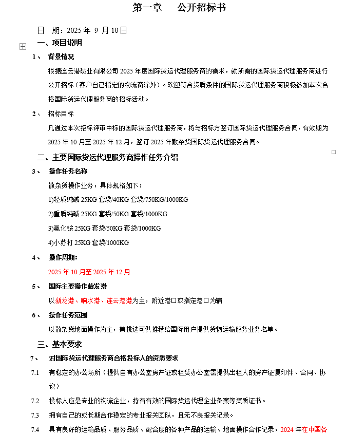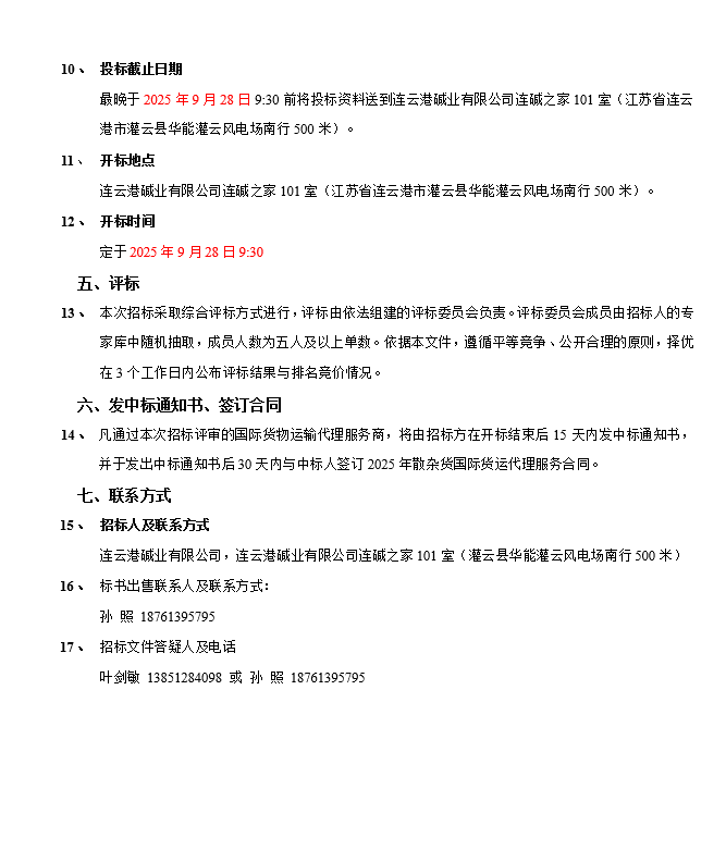 連云港堿業(yè)有限公司散雜貨國際貨運(yùn)代理服務(wù)商項目招標(biāo)公告