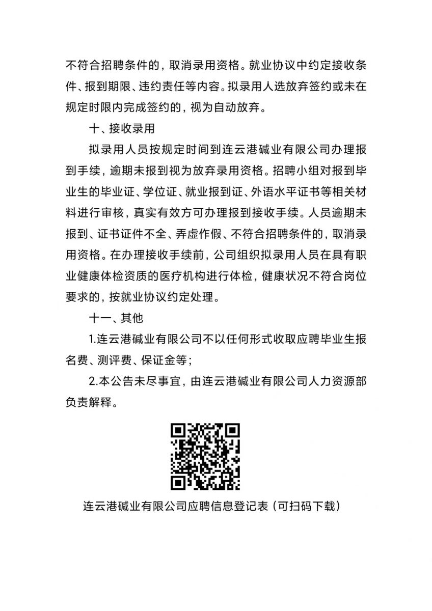 連云港堿業(yè)有限公司2026年度招聘簡章