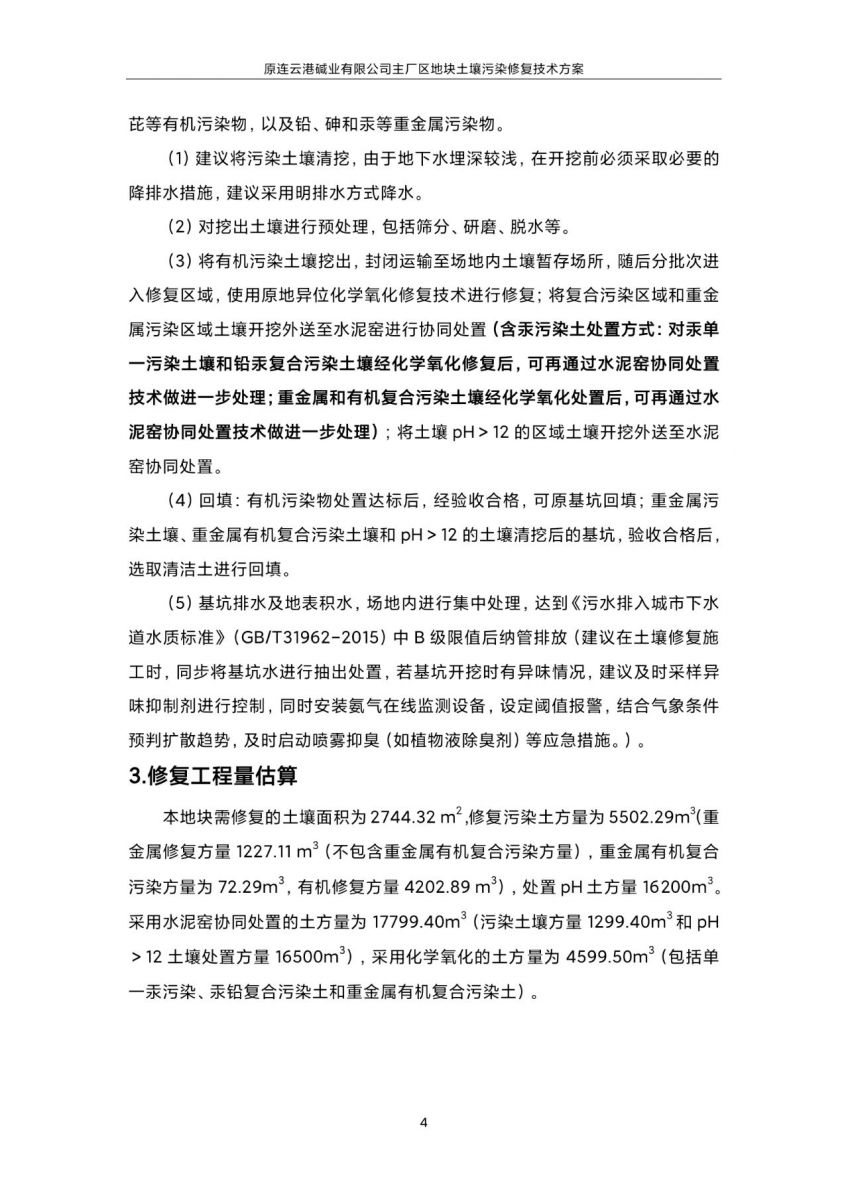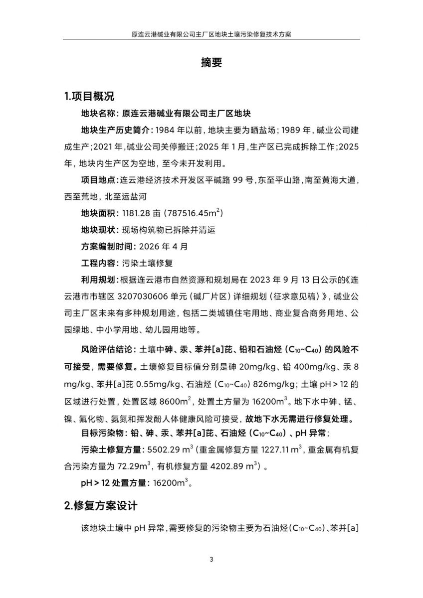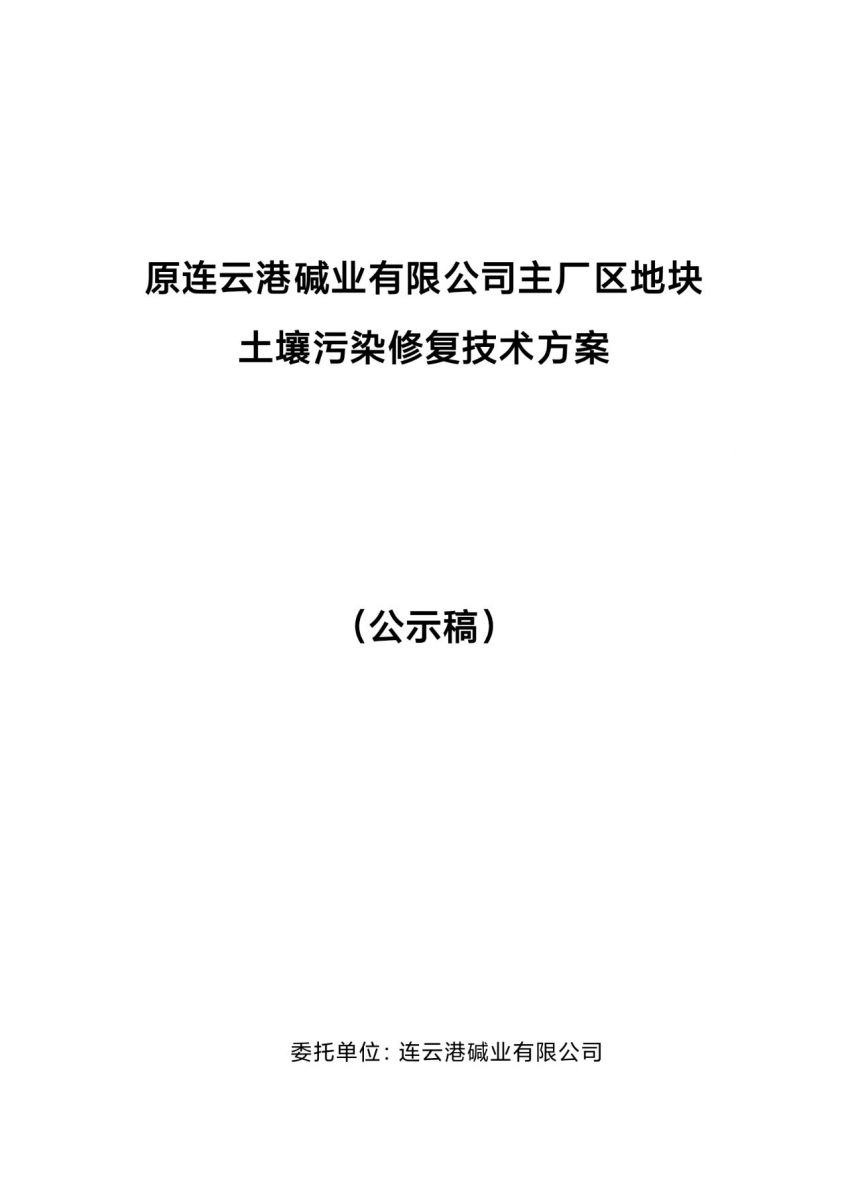 原連云港堿業(yè)有限公司主廠區(qū)地塊土壤污染修復技術方案(公示稿)