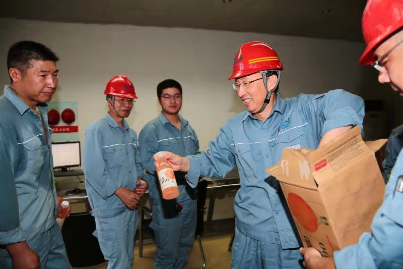 公司領(lǐng)導(dǎo)每到一處,親手將一瓶瓶清涼飲品送到大家手中,與現(xiàn)場人員一一握手,感謝大家在炎炎夏日仍不辭辛勞、堅守崗位,為全面完成各項目標任務(wù)所作出的奉獻,并叮囑他們在堅守崗位的同時注意安全生產(chǎn),做好防暑降溫工作。他要求各單位要堅持“生命至上、安全發(fā)展”的理念,把各項安全生產(chǎn)防護措施落實落細,切實保障員工的身體健康,確保各項生產(chǎn)作業(yè)順利進行。