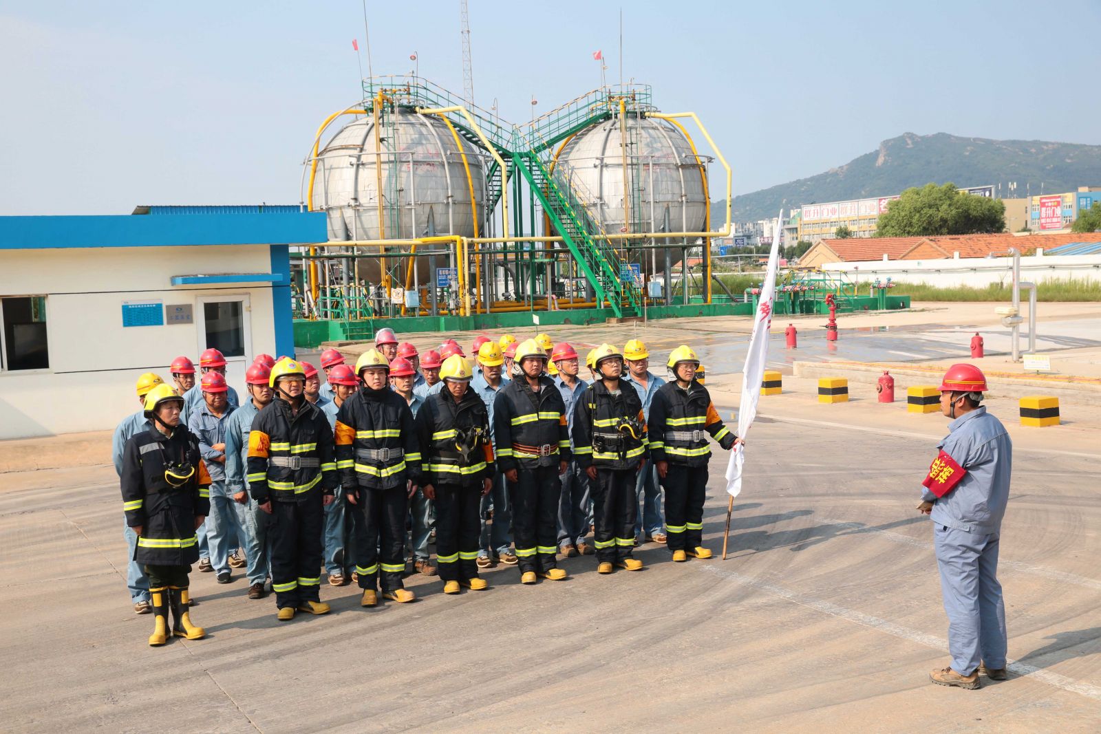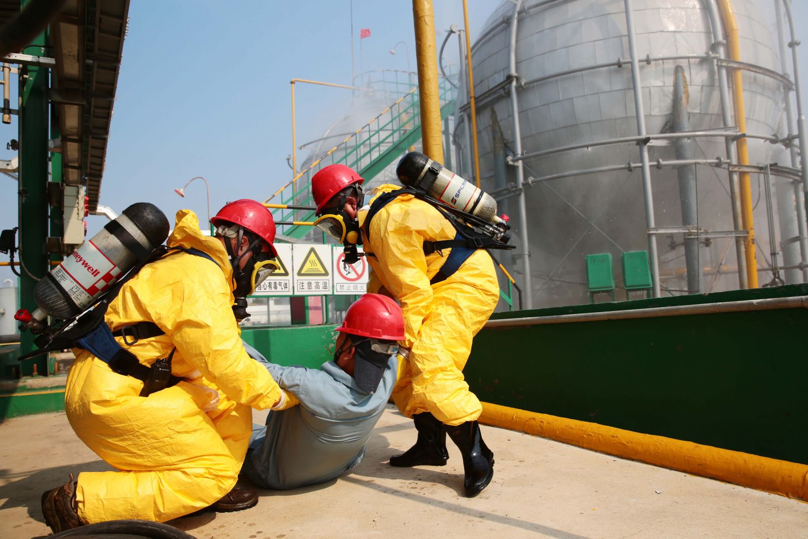 為檢驗公司應(yīng)急救援時各環(huán)節(jié)的協(xié)調(diào)能力和應(yīng)急救援預(yù)案的可操作性,提高應(yīng)急人員在緊急情況下妥善處置突發(fā)事件的實戰(zhàn)能力,9月5日,公司以“液氨庫B球罐底部發(fā)生泄漏,現(xiàn)場當(dāng)班工人中毒”為假想事故,在液氨庫舉行秋季危險化學(xué)品生產(chǎn)安全事故應(yīng)急救援演練。