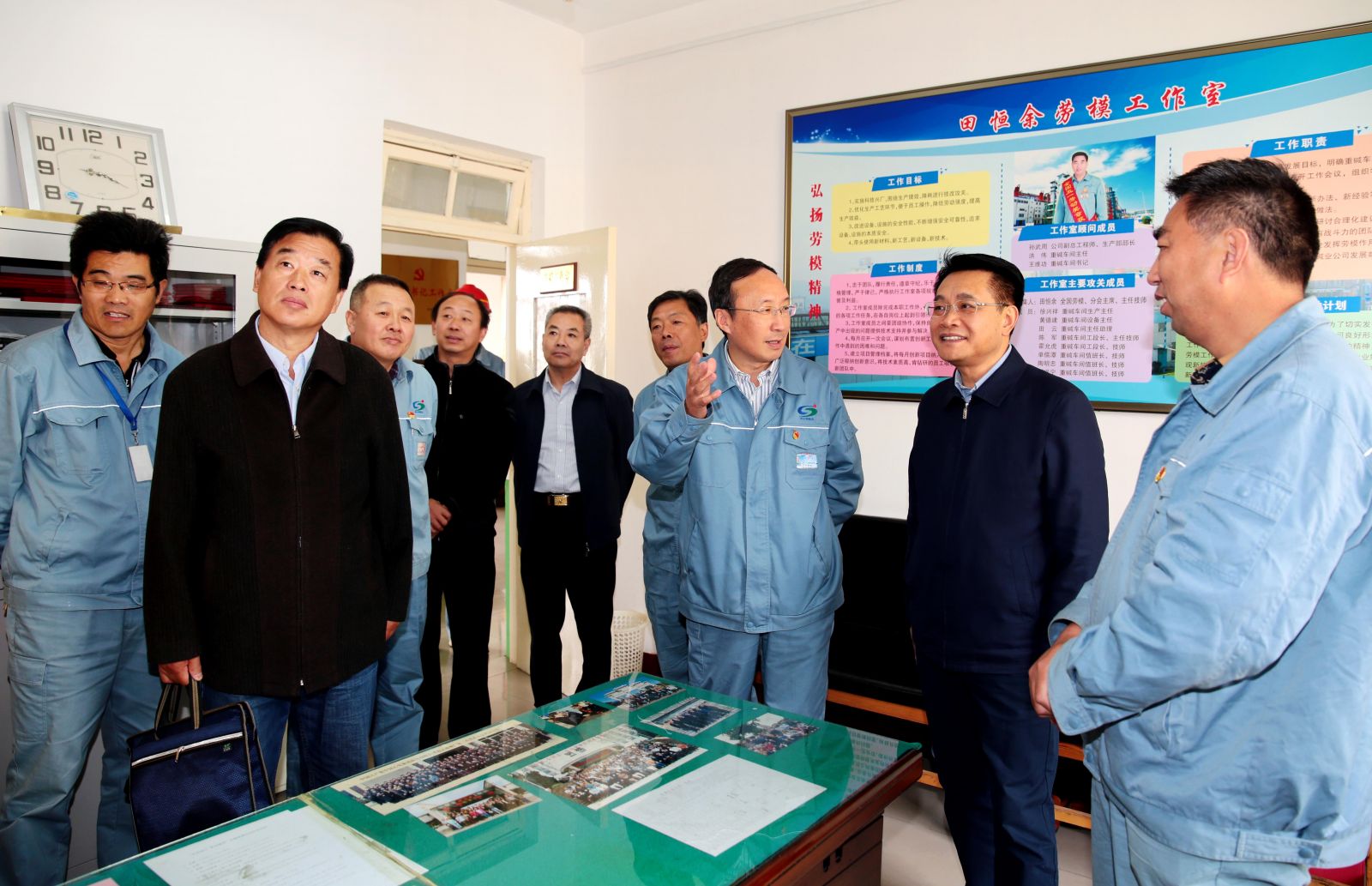 在田恒余勞模工作室,王家全詳細詢問公司勞模情況,當他得知田恒余的“黃泥堵漏法”、“七字操作法”等小發(fā)明、小創(chuàng)造給公司帶來的豐厚經濟效益時,他指出,自己優(yōu)秀更要繼續(xù)發(fā)揚好勞模帶頭引領作用,勞模工作室的關鍵在創(chuàng)新,利用好這平臺,將勞模精神和技能傳承下去,為公司持續(xù)發(fā)展提供人才保障。