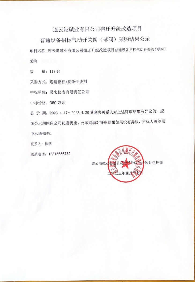 氣動(dòng)開關(guān)閥(球閥)采購(gòu)結(jié)果公示