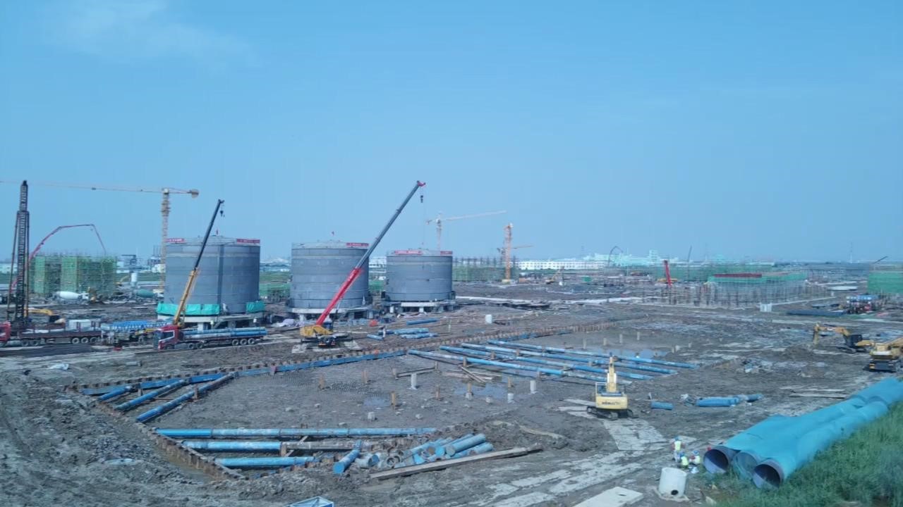⑴聯(lián)堿一標(biāo)段101b聯(lián)堿辦公樓屋面女兒墻拆模養(yǎng)護(hù);152中心控制室屋面鋼結(jié)構(gòu)進(jìn)場(chǎng),砌體施工;151化驗(yàn)中心四層支撐架搭設(shè);340機(jī)電儀維修廠房鋼結(jié)構(gòu)工廠預(yù)制,砌體施工;510重堿車(chē)間V51301A設(shè)備中心筒與溢流箱合攏,氨II澄清桶安裝,母液I澄清桶安裝.管廊基礎(chǔ)防腐回填;532重灰段深基坑回填、水池養(yǎng)護(hù);280b換熱站屋面鋼結(jié)構(gòu)工廠預(yù)制。