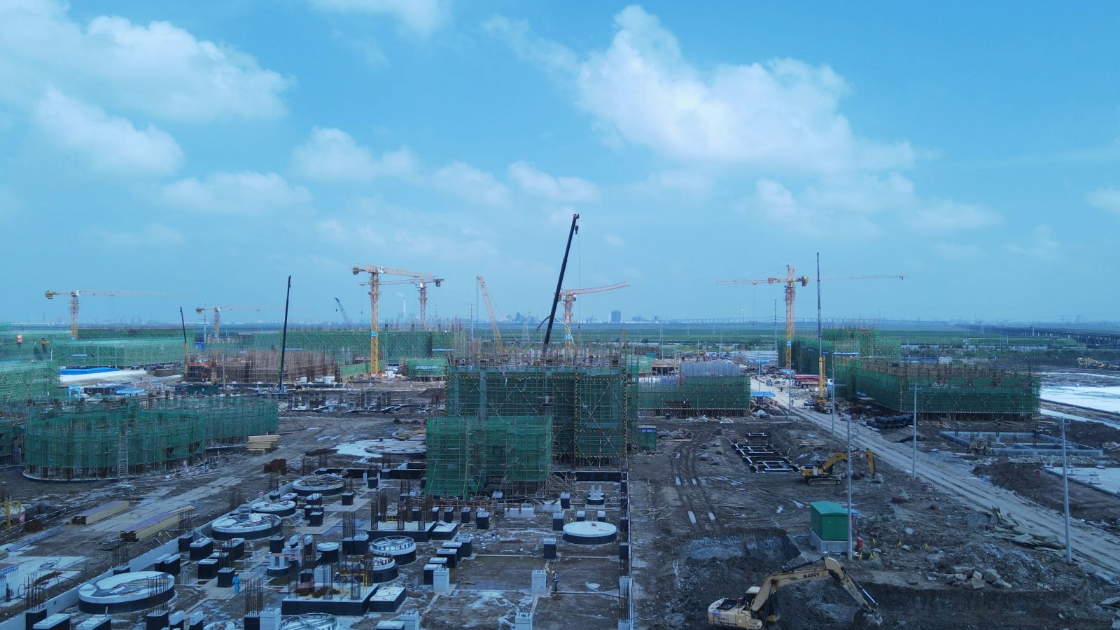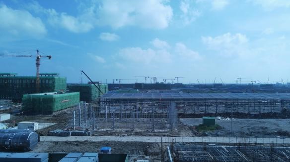 ⑴聯(lián)堿一標(biāo)段101b聯(lián)堿辦公樓砌體及二構(gòu)施工;152中心控制室鋼結(jié)構(gòu)屋面安裝,基礎(chǔ)磚墻±0m以下砌筑;151化驗(yàn)中心地坪以下砌體施工準(zhǔn)備;340機(jī)電儀維修廠房鋼結(jié)構(gòu)屋面工程,廠家預(yù)制加工完成;510重堿車間蒸吸罐區(qū)其他非標(biāo)設(shè)備基礎(chǔ),V51301A/B頂板及加強(qiáng)筋拼裝、V51301A溢流箱內(nèi)加強(qiáng)筋安裝;532重灰工段深基坑接樁,土方回填;280b換熱站屋面鋼結(jié)構(gòu)工廠預(yù)制基礎(chǔ)磚墻±0m以下砌筑;550壓縮及冷凍裝置空冷器框架,廠房基礎(chǔ)澆筑。