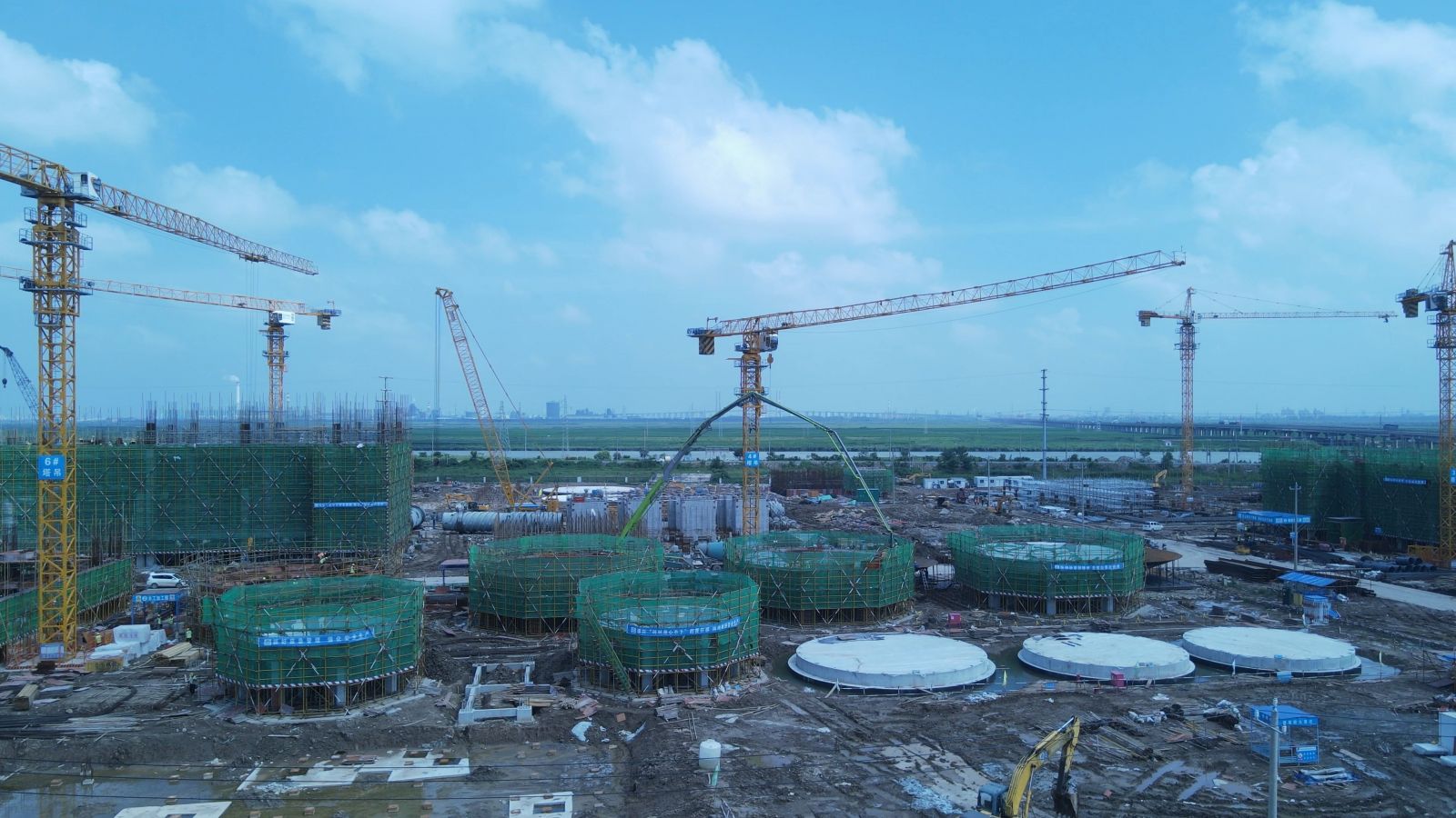 ⑸合成氨二標(biāo)段271原料煤儲(chǔ)運(yùn)破碎樓三層底板放線,#1轉(zhuǎn)運(yùn)站頂層梁板柱澆筑,#2轉(zhuǎn)運(yùn)站三層支撐架搭設(shè),鋼筋綁扎、支模,角撐、斜撐、圍檁安裝;820合成氨循環(huán)水站清凈廢水池上部結(jié)構(gòu),塔下水池墻壁支模;711煤漿制備二層腳手架搭設(shè),鋼筋綁扎,支模,安裝預(yù)埋件,初期雨水池池壁鋼筋綁扎,支模,支撐架搭設(shè),套管安裝;762壓縮機(jī)廠房上部結(jié)構(gòu)支模;761冷箱基礎(chǔ)冷箱防護(hù)墻拆模;膨脹機(jī)房上部結(jié)構(gòu)鋼筋綁扎;712氣化框架立柱腳手架搭設(shè),鋼筋綁扎,基礎(chǔ)承臺(tái)鋼筋綁扎,支模,防腐;灌注樁施工;842空分機(jī)柜間鋼筋綁扎;713渣水處理集渣池鋼筋清理,設(shè)備基礎(chǔ)預(yù)埋螺栓安裝。