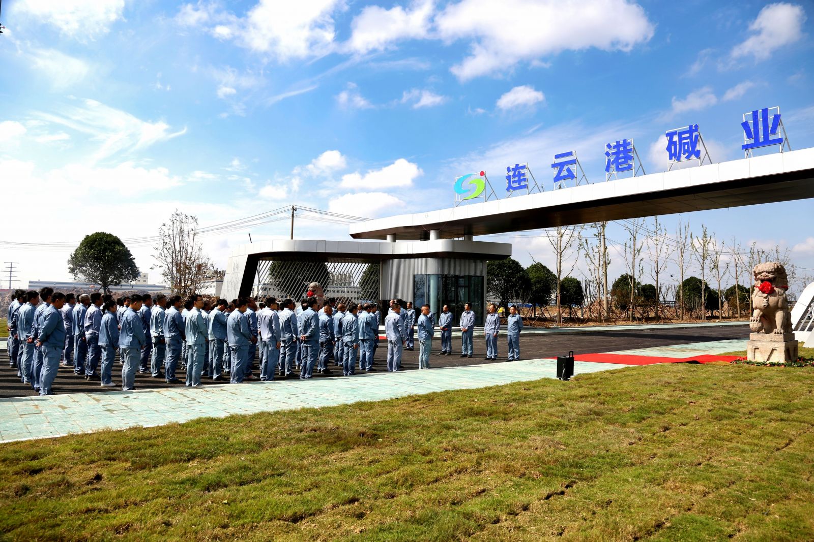 儀式上,姜自成、延立強為廠前區(qū)石獅揭幕。據(jù)悉,這一對石獅與老堿廠風雨兼程近三十年,見證了老堿廠的興起、輝煌和衰落,是堿業(yè)公司歷史傳承的一分子,是堿業(yè)公司企業(yè)文化的一分子,是全體堿業(yè)人深刻記憶的一分子。如今,這對石獅落成在全新的堿業(yè)公司,必然成為堿業(yè)公司新發(fā)展的守護者,必然成為堿業(yè)公司新篇章的見證者,必然成為全體堿業(yè)人新精神的守望者。它們時刻提醒著我們不忘初心、銘記歷史,同時也鼓舞著我們勇往直前、開拓創(chuàng)新。