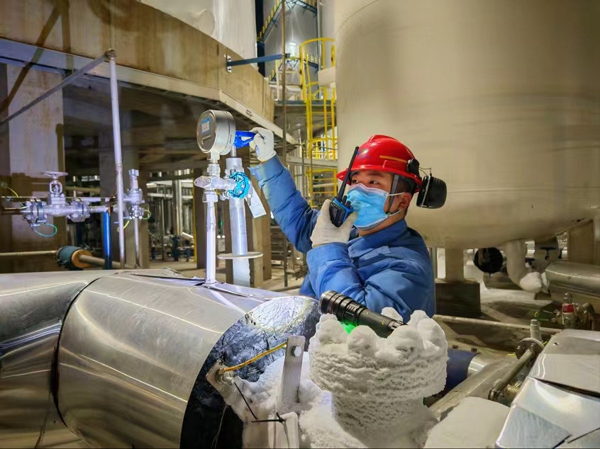 “春節(jié)期間,我們一定堅(jiān)守崗位,保持最佳狀態(tài),確保各項(xiàng)工作有序推進(jìn)。” 空分車間員工堅(jiān)定地說道。“春節(jié)期間更要打起十二分精神,不能有絲毫懈怠。” 他們密切關(guān)注著設(shè)備的運(yùn)行參數(shù),仔細(xì)記錄著每一個(gè)數(shù)據(jù)。“走,除夕夜檢查不能停,一定要確保萬無一失。”夜色中,他們頂著瑟瑟寒風(fēng)認(rèn)真巡檢,檢查空壓機(jī)運(yùn)行狀態(tài),保障儀表氣穩(wěn)定供應(yīng)。為了確保后序工段氮?dú)獯祾吆兔芊鈿夤?yīng),空分車間定時(shí)對(duì)真空液氮儲(chǔ)槽進(jìn)行充液,為氮?dú)夤?yīng)保駕護(hù)航。
